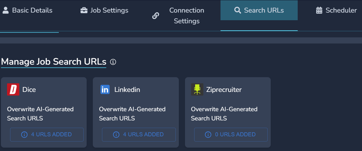 - Conneciton Settings - Disconnect or reconnect to the Job Portals.